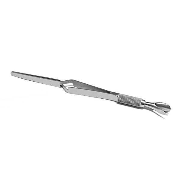 Instrumento para fazer o aperto de forma a criar curvatura C na extensão da unha. Utilizado também para empurrar as cutículas da unha natural.